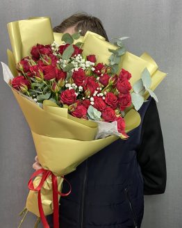 Букет из 5 веточек красной кустовой розы и гипсофилы1,930.00 руб. -