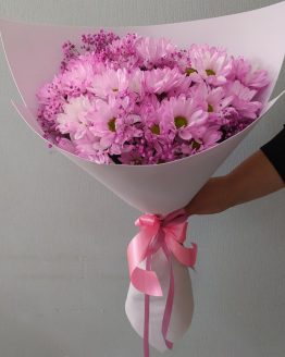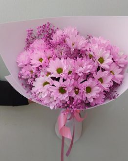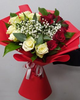 Букет из 5 веточек красной кустовой розы и гипсофилы