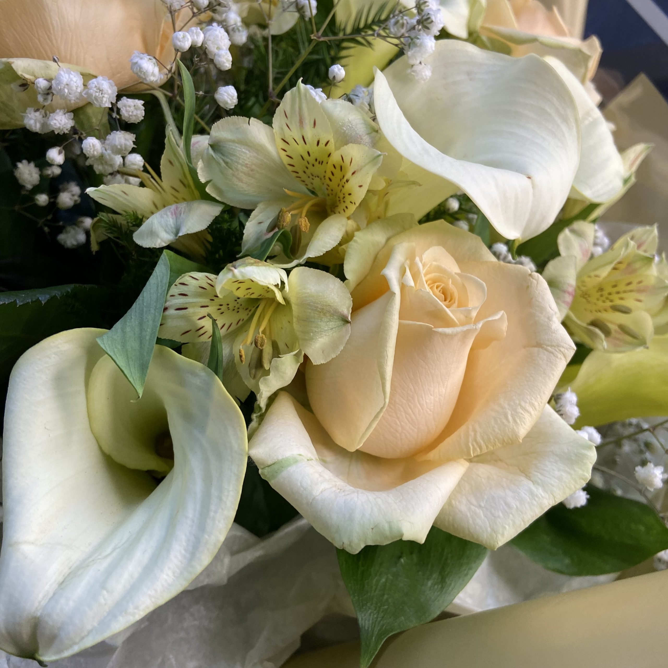 Букет из калл, альстромерий и роз