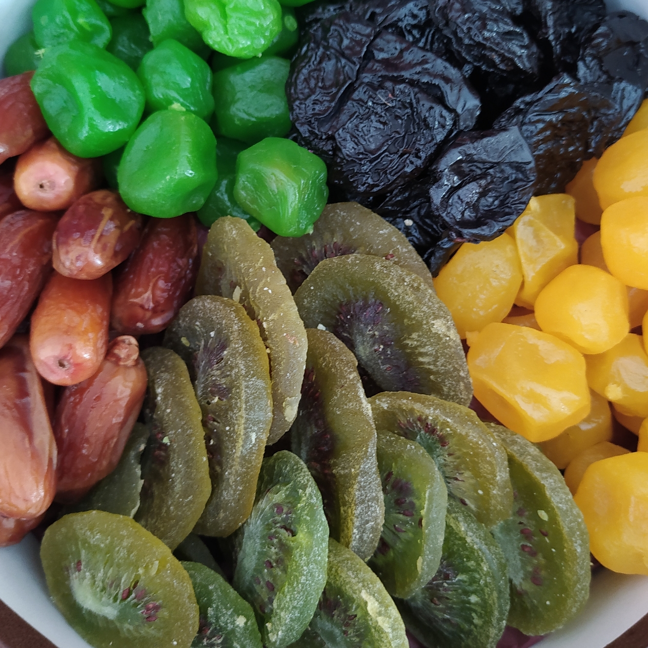 Киви — 300г. Финики — 300г. Чернослив — 300г. Кумкват — 600г.